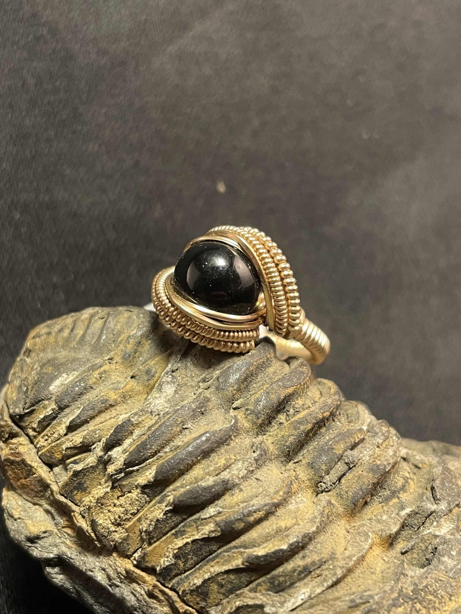 Black Obsidian 14kt Gold “mini” Ring Size 5