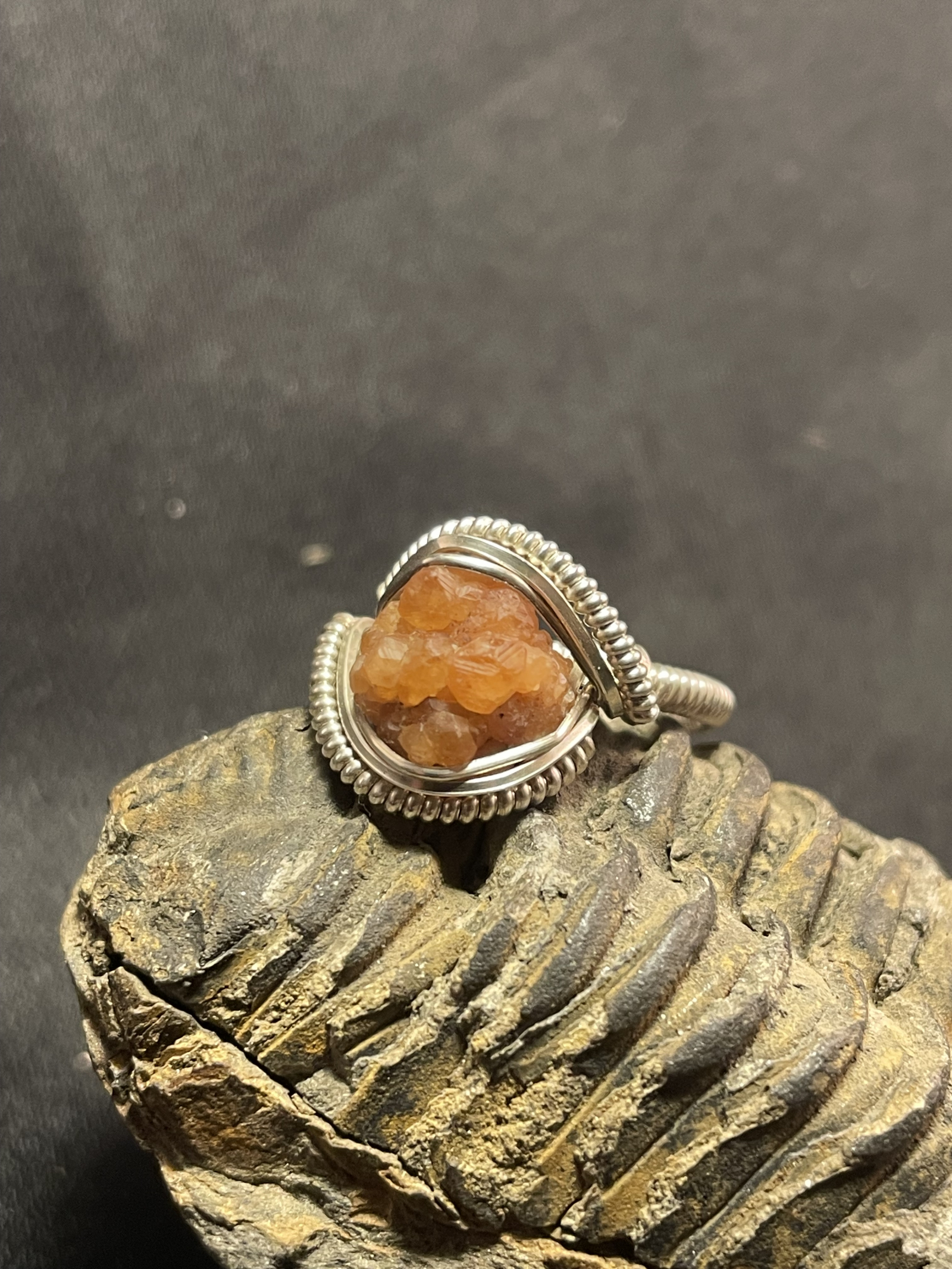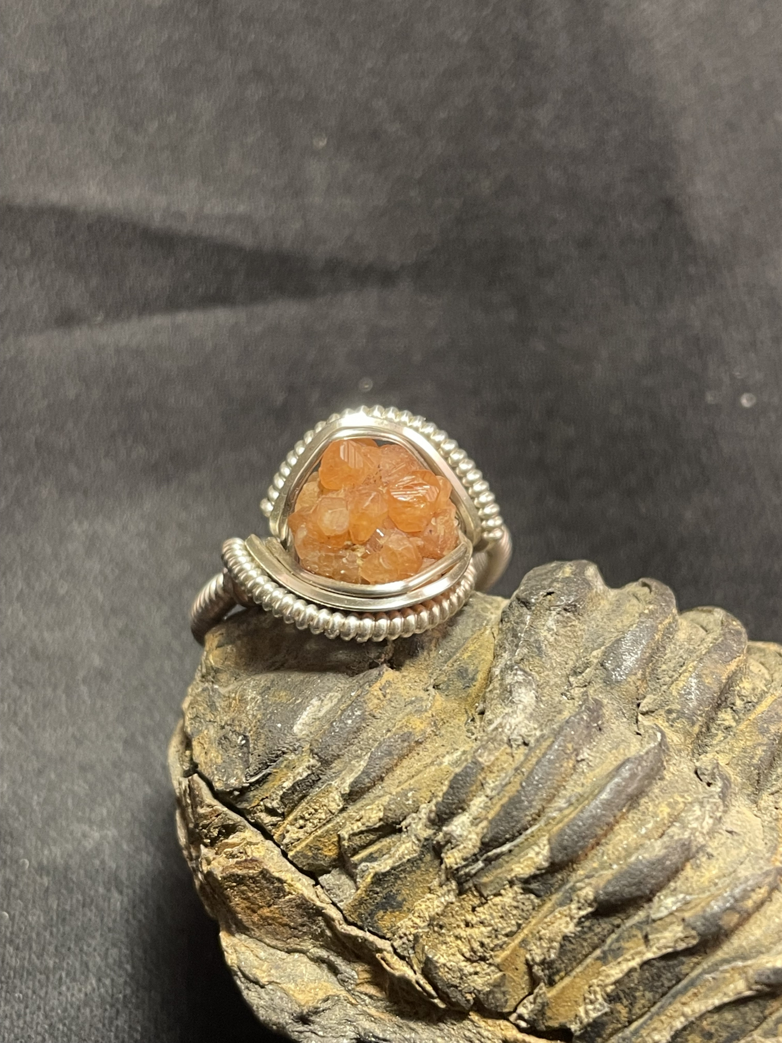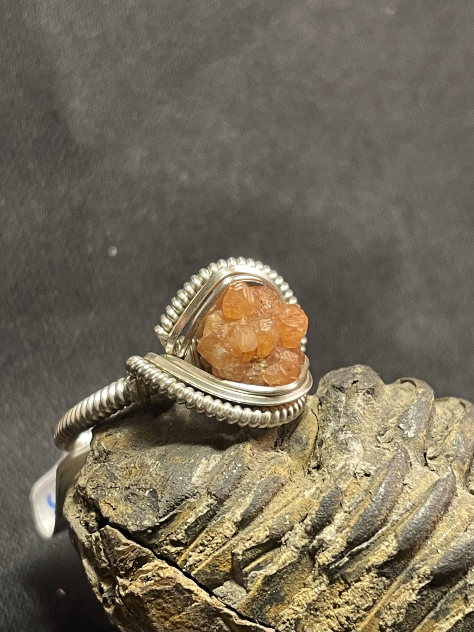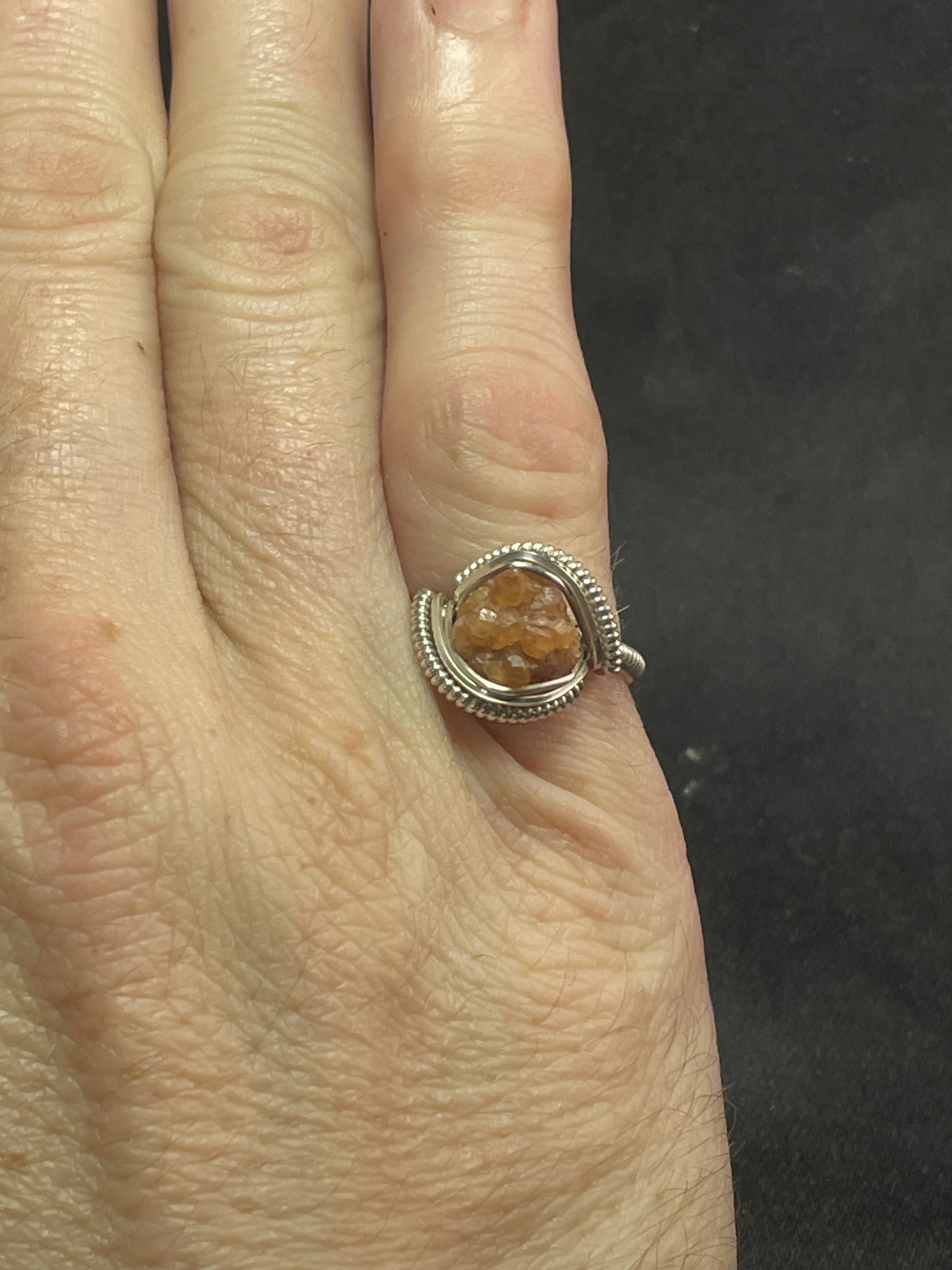 Handcrafted .925 Sterling Silver wire in a "minimalist style featuring a Etched Garnet Cluster